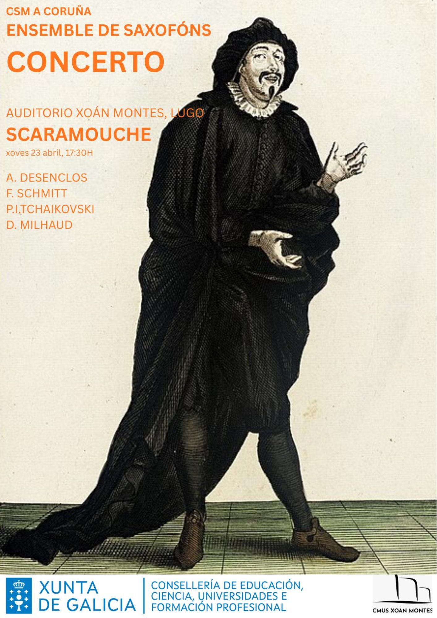 Interpretarán obras de A. Desenclos, F. Schmitt, P.I. Tchaykowsky e D. Milhaud.